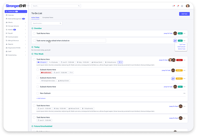 Jump to Tasks’ with Automated To-Dos. Easily jump back to do more. No need to crawl the EHR to find your next job. Custom automatic-project templates take this to the next level with concurrent and subsequent tasking of your team! Management has never been more easy.